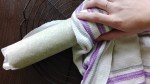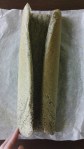 Upečený korpus vyndáme z trouby a ještě teplý zabalíme do rolády, aby nám potom těsto při stočení nepopraskalo. Chvilku roládu necháme stočenou, aby si těsto na tuto polohu zvyklo, a poté ho lehce rozvineme, aby vychladlo.