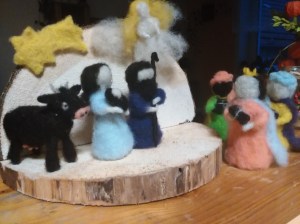 Nuže, asi nejjednodušší technikou, kterou jsme vyzkoušely, bylo suché plstění…tedy nejjednodušší ve smyslu toho, že k tomu potřebujete pouze speciální plstící jehlu a kousek molitanu, jinak o jednoduchosti ve smyslu náročnosti nemůže být ani zmínka. Upřímně, přestože se nám sice povedlo vytvořit pár jednoduchých figurek, tak nás tato technika příliš neoslovila.