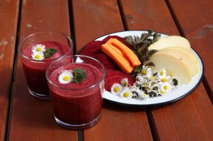 Protože jak kopřiva, tak sedmikráska jsou bylinky, které čistí krev, rozhodly jsme se spojit jejich síly a vyrobit z nich očistné jarní smoothie. Jenže co k těmto dvěma léčivkám přidat, aby se to všechno dobře doplňovalo? My jsme se rozhodly pro červenou řepu, která mimo jiné podporuje tvorbu červených krvinek, a pro mrkev, která prospívá snad všem orgánům (takže i srdci, což nám rázem do Čistokrevného smoothie krásně pasuje 😀 ). Nakonec jsme přidaly ještě kousek jablíčka pro zjemnění a doslazení tohoto koktejlu.