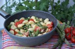 Mezitím osmažíme chřest a po chvilce přidáme i rajčátka, směs krátce orestujeme a zalijeme smetanou. Necháme chvilku prohřát, můžeme osolit a opepřit podle chuti. Scedíme noky a vmícháme je rovnou do směsi. Opatrně všechno promícháme, odstavíme a můžeme podávat.