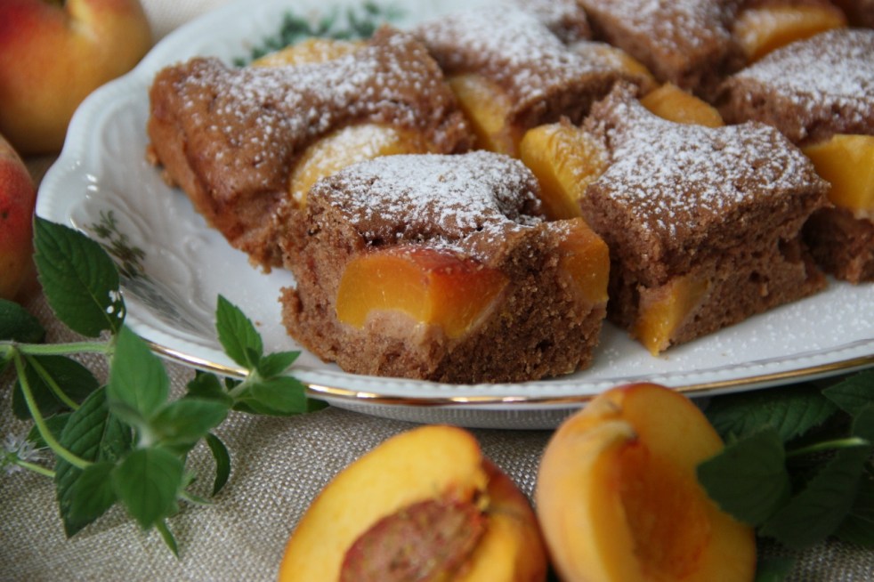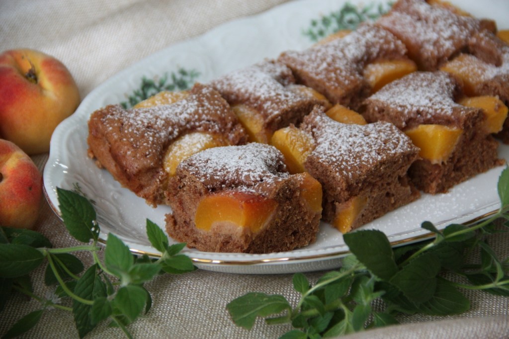 Tenhle perník je podle mě úplný zázrak. Tak snadný, rychlý a naprosto vynikající. Je vláčný a typická chuť kakaového perníku se skvěle doplňuje právě s broskvemi. Úžasně voní po skořici a perníkovém koření a v ústech se úplně rozplývá. Já jsem si ho vážně zamilovala a až zjistíte, jak je snadný, určitě ho nebudete dělat jen jednou. Broskve se dají samozřejmě nahradit i jiným ovocem, to nechám na vás.
