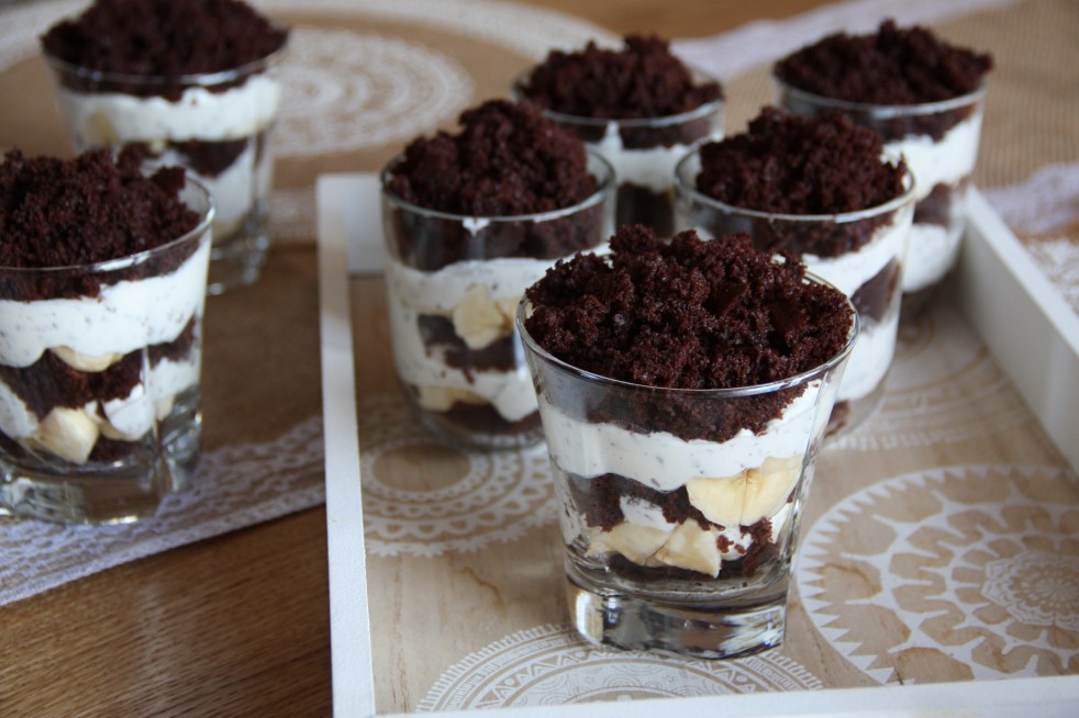 Pak už jenom navrstvíme do skleniček rozdrobený korpus, nakrájené banány a krém. Krtkův dort ve skleničkách můžeme ihned podávat. Dobrou chuť!