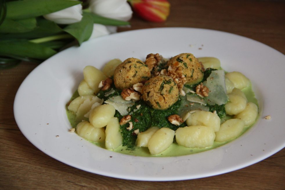 Luštěniny jsou bohužel často opomíjenou surovinou, a přitom se z nich dají udělat tak dobré věci. Věřím, že tohle vegetariánské jídlo zachutná i milovníkům masa. Kuličky jdou udělat i z jiných luštěnin, například mungo fazolek, které ovšem musíte den předem namočit. Na omáčku můžete použít jak čerstvý špenát, tak i mražený, a noky můžete nahradit třeba těstovinami.… Pokračovat ve čtení Kuličky z červené čočky se smetanovým špenátem a bramborovými noky